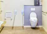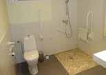 bedden (foto 2). De badkamers hebben een inrijdbare douche met zitje en voldoende opstelruimte naast, voor en schuin voor het zitje. Beugels zijn voorzien (foto 3). Ook het toilet heeft voldoende opstelruimte en beugels. De wastafel is onderrijdbaar.