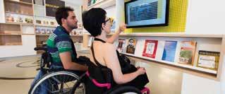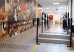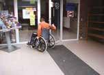 Toegangspad, ingang en onthaal Er zijn twee kleine drempeltjes van 2 cm vlak na elkaar. De deuren zijn vrij zwaar om zelf te openen. Er is voldoende circulatieruimte. De balie heeft een verlaagd en onderrijdbaar deel.