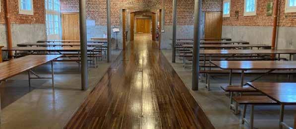 Eetzaal / multifunctionele ruimte Kasteel en Koetshuis: goede circulatieruimte. Er zijn onderrijdbare tafels aanwezig (foto 2).