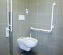 Er is voldoende opstelruimte naast het toilet, ervoor heb je 80 cm. De toiletpot staat laag. Er zijn beugels voorzien.