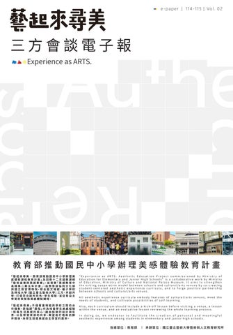 「藝起來尋美-教育部推動國民中小學辦理美感體驗課程教育計畫」為因應十二年國教課綱「藝術涵養與美感素養」並落實「美感教育中長期第二期五年計畫」之新型態美感體驗課程,並由教育部媒合藝文場館、種子學校及師資培育三方共創共學、打造符合館所特色、學生經驗,並促發自主學習。而針對各組藝文場館與種子學校之特色和提案性質,課程諮詢委員將擔任輔導諮詢角色,建立三方會談之對話端點。 ━━━━━━━━━━━━━━━━━━━━━━━━━━━━━━━━━━━━━━━━━━━━━━━━━━━━━━━━━━━━━━━━━━━━━━━━━ 本電子報將節錄各年度之第一次三方會談內容之要點,以利於日後進行回顧。