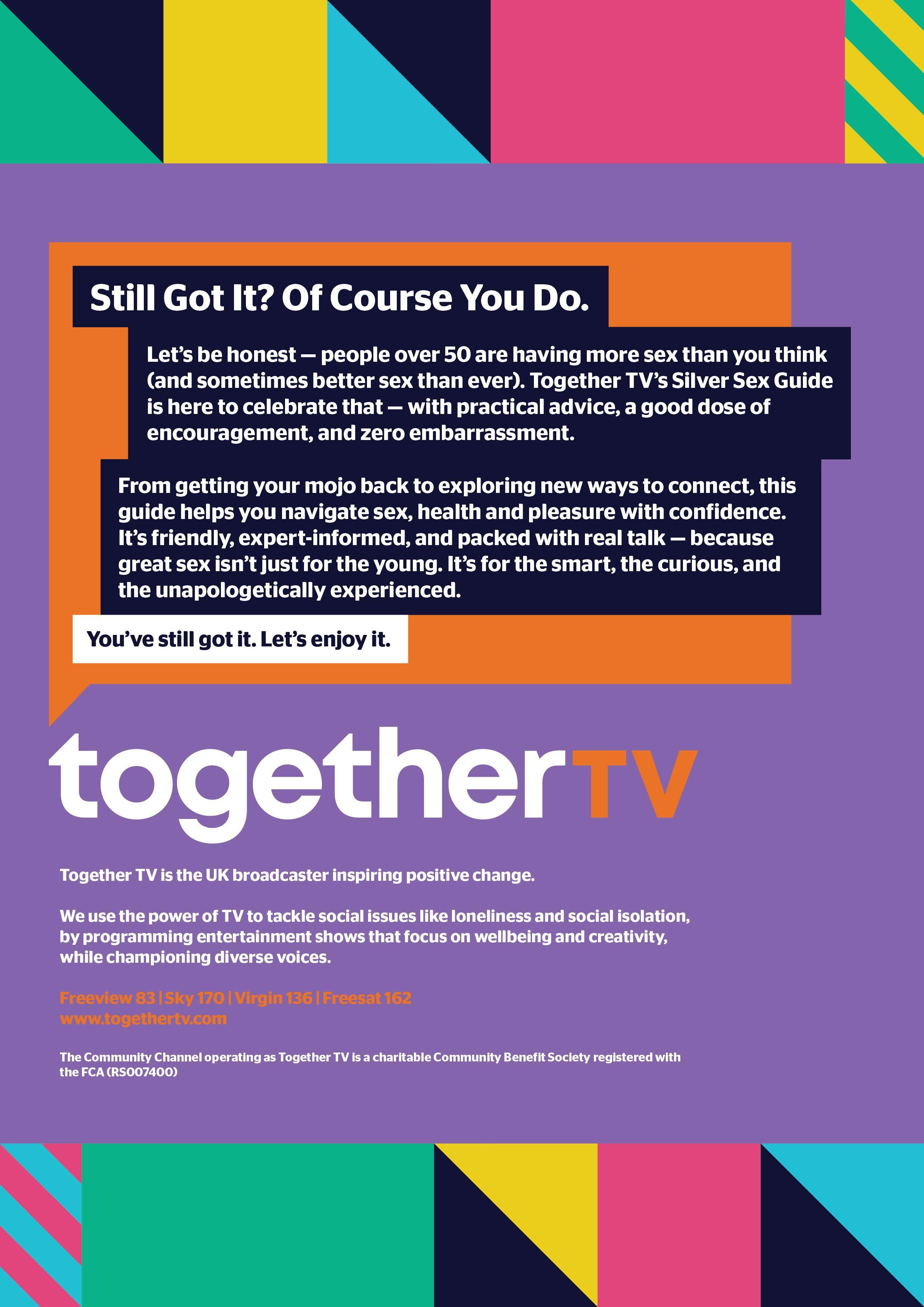 I’m proud to support Together TV’s campaign to challenge outdated taboos and encourage more openness. And most importantly, help people embrace their sexuality, no matter the age!”