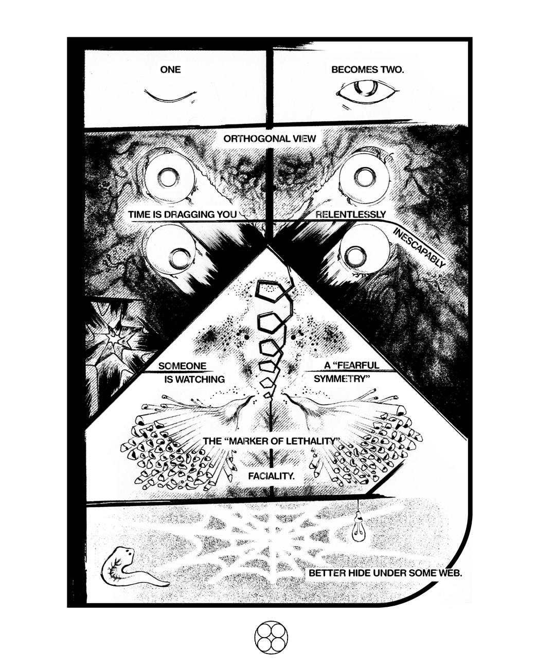 Pages from Horror of Symmetry, a story collected in my personal anthology called IPE, 2023.