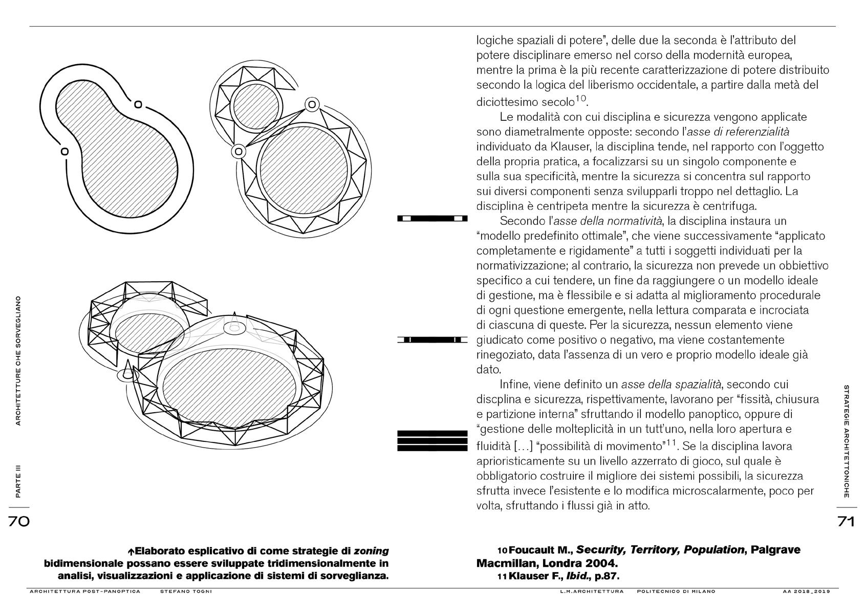 This critical and historical thesis is a multidisciplinary study on the most recent urban phenomena of the power to control on the individual made in an architectural form, focusing on the theory of architectural design, on surveillance techniques and on the intersection between these disciplines.