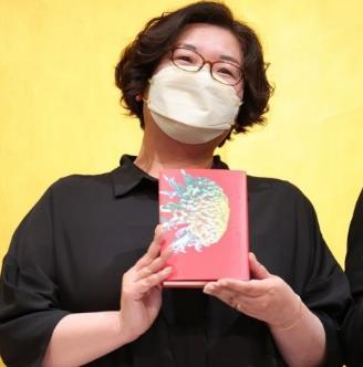 She is an author who writes while working as an office worker. She specializes in BL novels, among others, but has also won various literary awards. The photo shows her receiving the 171st Naoki Prize.