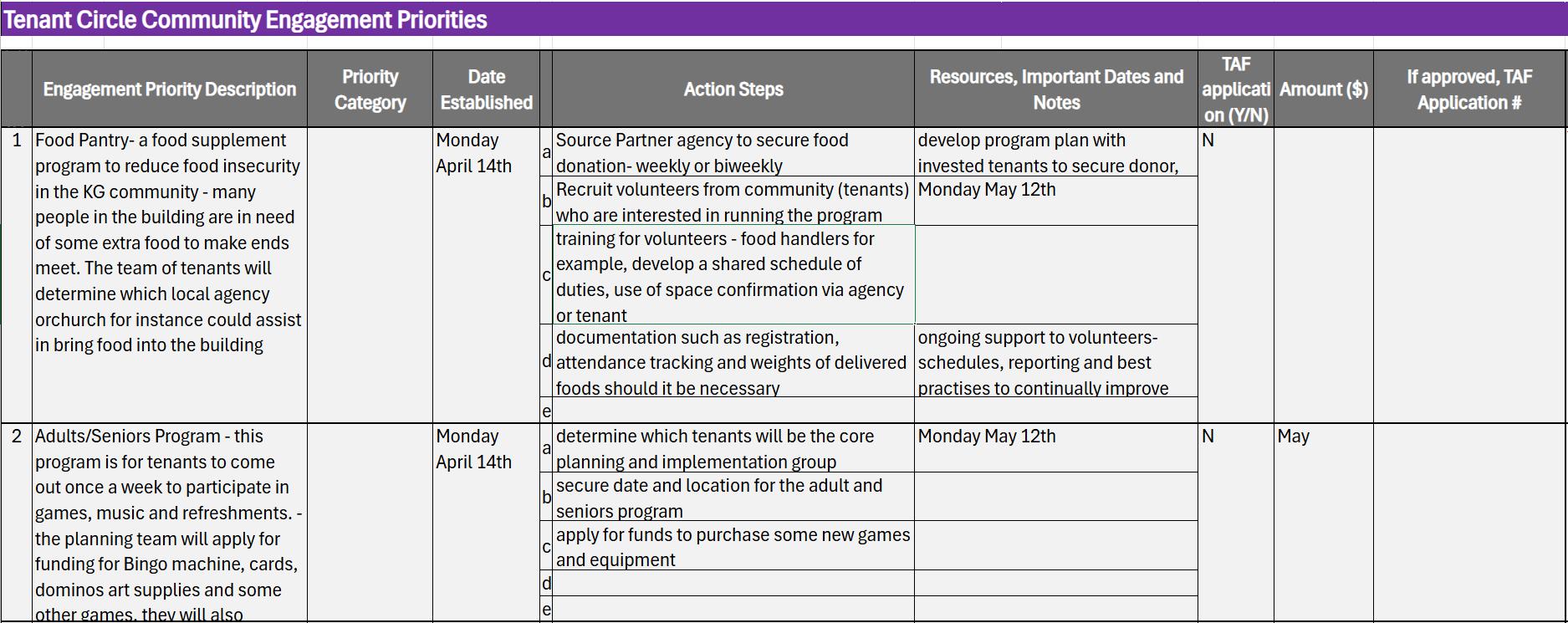 • Tenant Circles started meeting in May to set community priorities