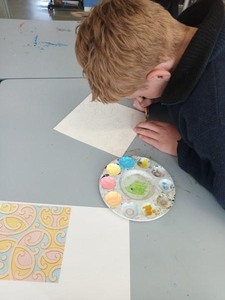 Years 9 and 10 Painting started the term with a study of work by Ngataiharuru Taepa. This work uses traditional imagery in pastel colours. Sophie Greer, Ivy Clarke, Jada-Rose Carr and Ben Scott share their work.