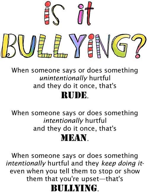 The most widely accepted definitions of bullying highlight four key elements: it is intentional, harmful, involves a power imbalance, and is repetitive. Bullying can occur anywhere, whether in person or online (cyberbullying), at any time, and can take verbal, physical, or social (relational) forms.