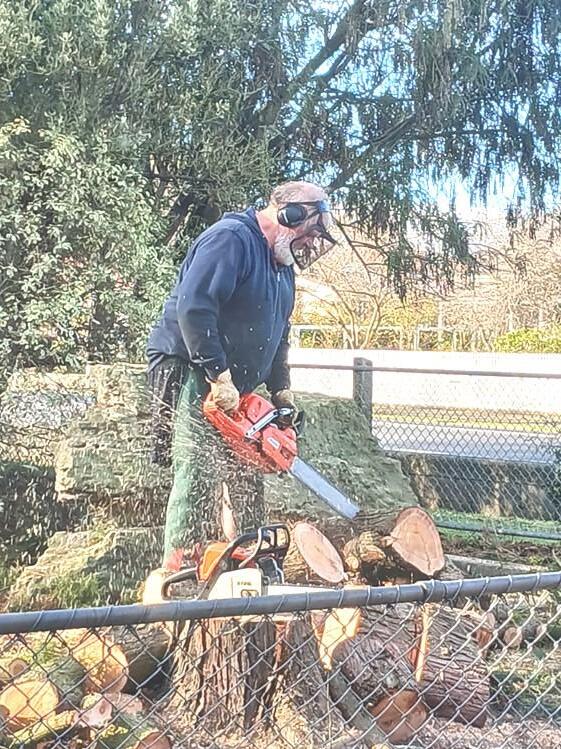 Last week, Mr Samson, his wife Rose, their daughter and her partner made a start on clearing out the old swimming pool site behind the Genesis office on the corner of Park Road. They felled a couple of trees, opening the area up. This is part of the work that will be carried out in the next few months to create an appealing frontage to the school.