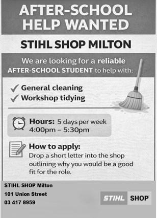 For any enquiries or enrolments please phone 03-4178720 or email office@milton.school.nz