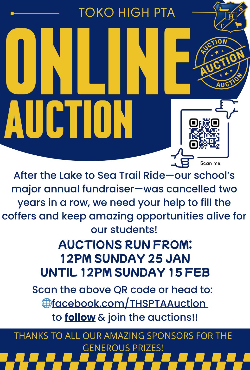 Our PTA have been working hard on their online auction, which will close on Sunday 15 February. There are a range of great items up for auction and we encourage families and community members to take a look and get involved. The auction will conclude on the same day as our Community Fun Day, which will be held at school on Sunday 15 February. This event will combine a market and car boot sale and promises to be a relaxed and enjoyable day for the whole community. If you would like to book a stall or car boot space for the Community Fun Day, please email pta@tokomairiro.school.nz