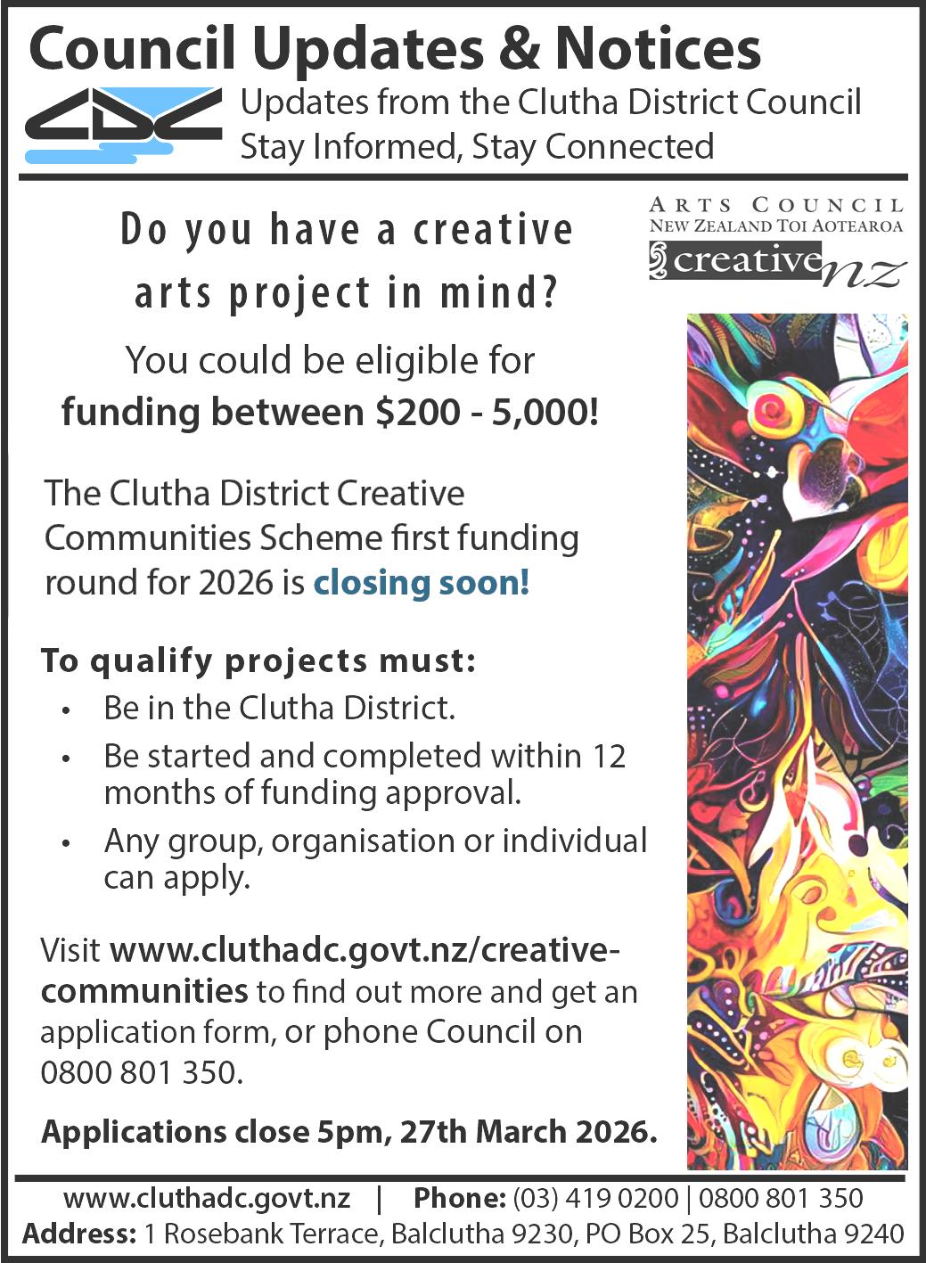 Genesis is delivered FREE to your letterbox on Wednesday afternoons. Any payments or donations can be made to Tokomairiro High School, account number 03 1736 0009803 000. Please use GENESIS and your name as reference. - Carolyn Shanks, Genesis Editor