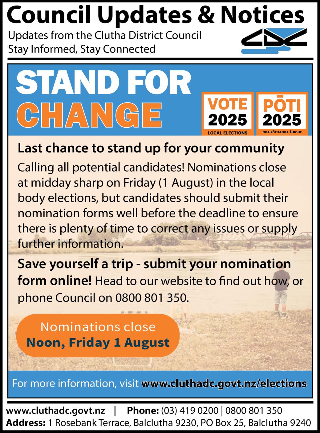 Nominations close at noon on Wednesday 6th August 2025. You may provide a signed candidate statement and photograph with your nomination.