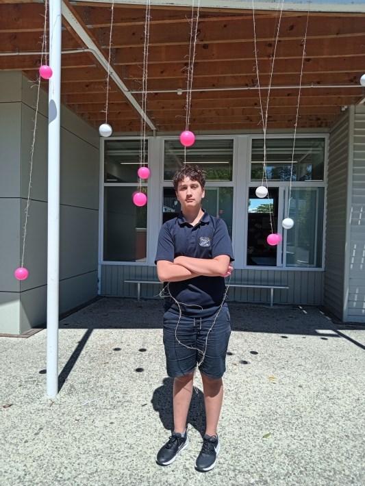 Tane Rewita posed in place of Mariko Mori, while classmates provided props and worked "behind the scenes."