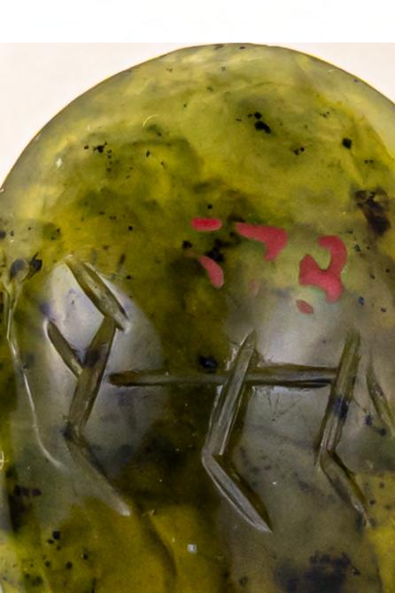 Take a closer look at these intricately carved gems featuring deities and magical inscriptions.