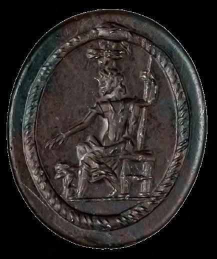Within an ouroboros (snake with its tail in its mouth), the god Harpocrates sits on a potlike symbol representing the human womb. His hand rests on a key that is meant to seal it, probably to promote pregnancy. The lengthy magic formula carved into the gem includes the word Ororiouth, a secret name for the deity believed to control the uterus.