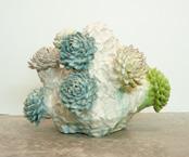 canopies of jacarandas, and lemony yellow citrus began to have a formal influence on his work. He compulsively formed vast numbers of clay petals necessary to fill out the “trees” as they multiplied in number.
