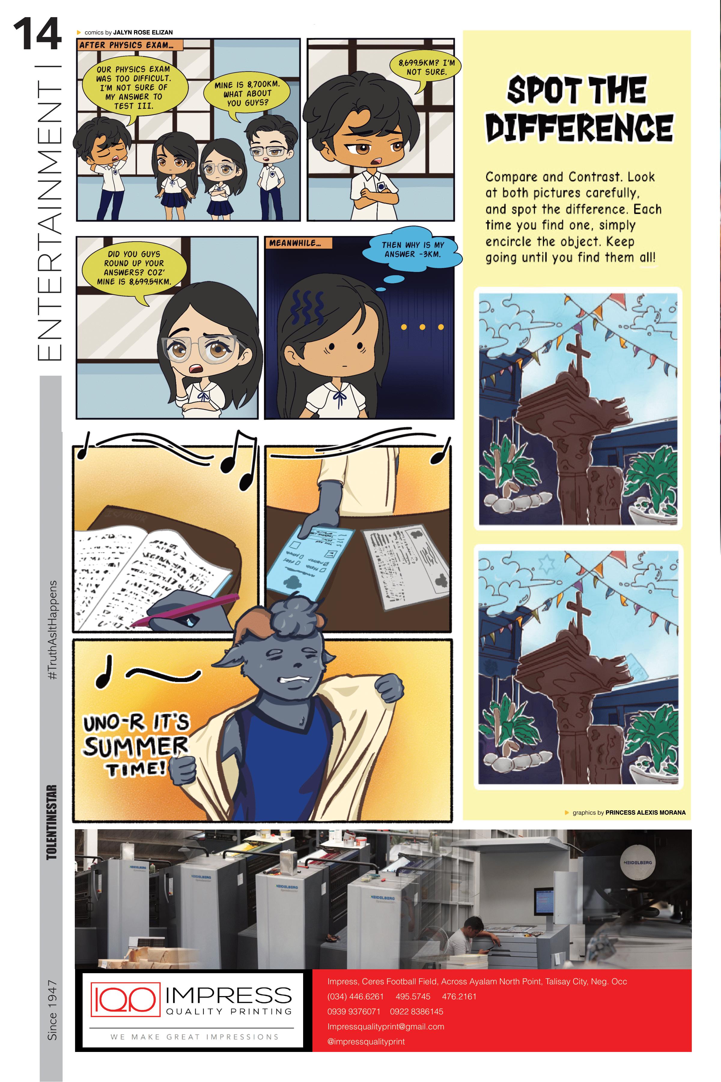 Published by the students of the University of Negros Occidental - Recoletos at Impress Quality Printing, Talisay City, Negros Occidental.