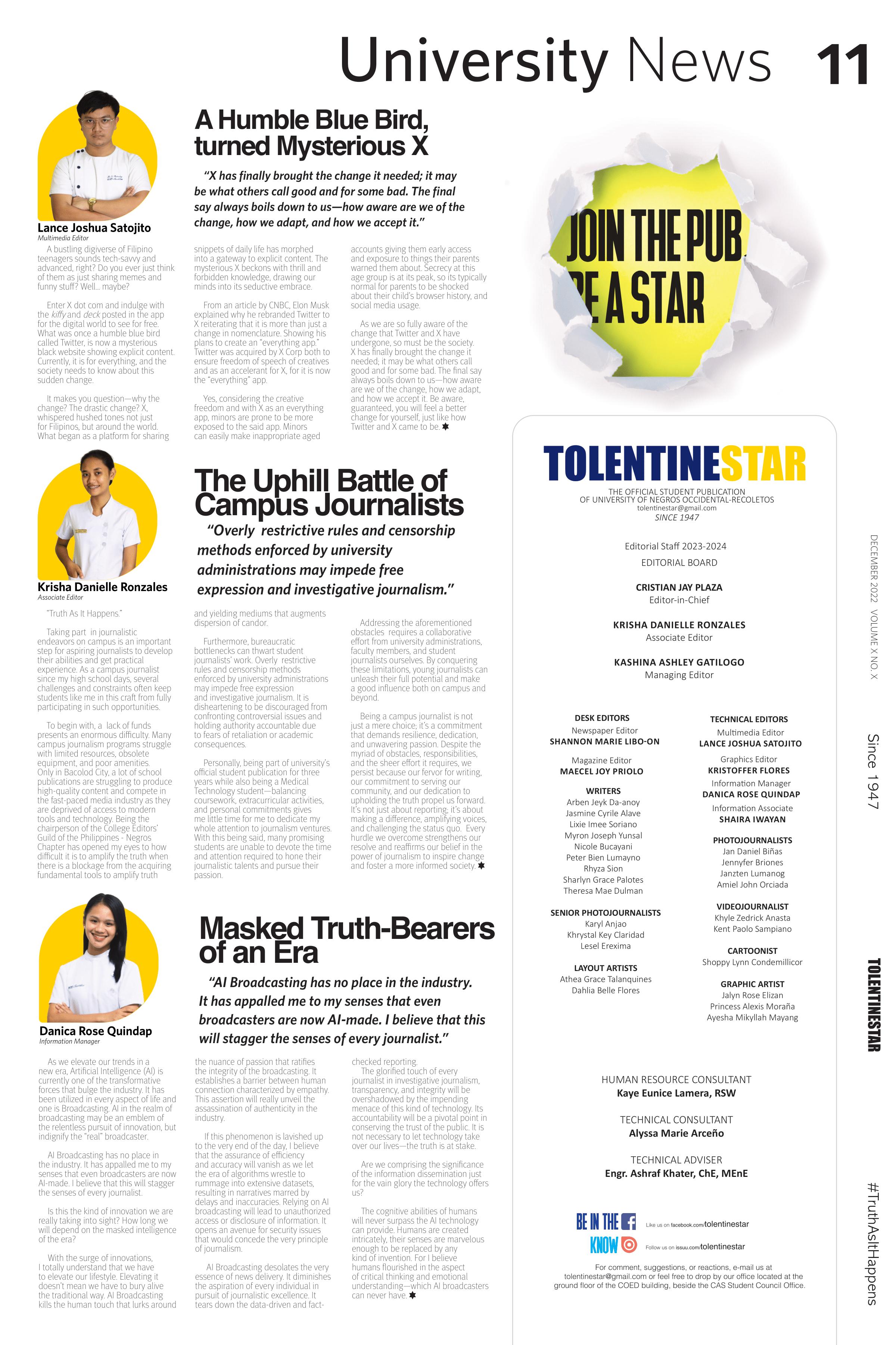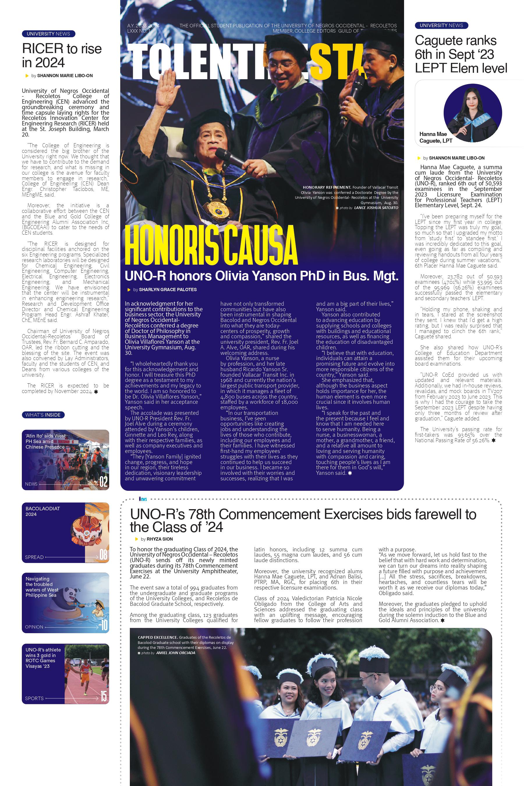 Copyright © 2024 Tabloid of Tolentine Star, the official student publication of the University of Negros Occidental - Recoletos.