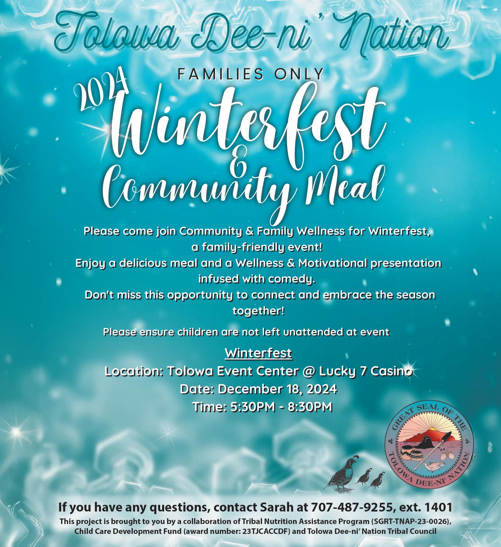 Community & Family Wellness Director, Teela James (707)487-9255, ext. 1139, teela.james@tolowa.com