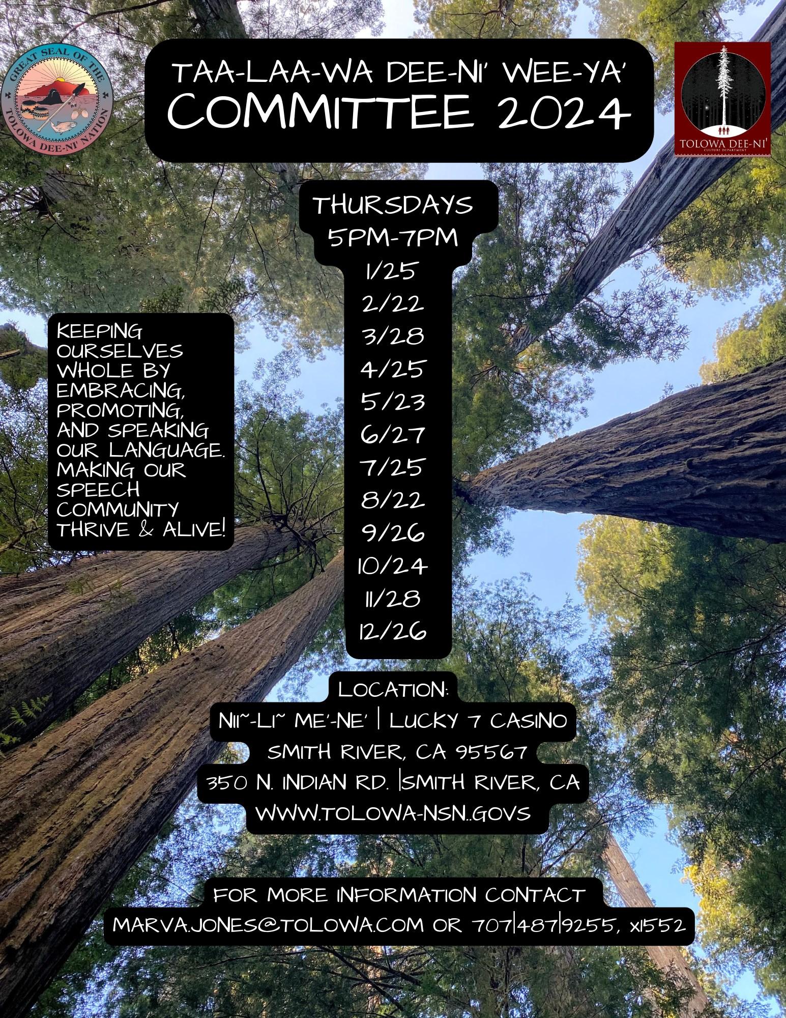 Srch’ee-te Num-nii~-ma~s (July) 2024 Tribal Government Newsletter published by the Tolowa Dee-ni’ Nation, 12801 Mouth of Smith River Road, Smith River CA 95567. Phone: 707-487-9255. Website: www.tolowa-nsn.gov. Articles do not necessarily reflect the opinions of the Tribal Council of the Tolowa Dee-ni’ Nation or their Staff. The Tribal Council of the Tolowa Dee-ni’ Nation reserves the right to use their discretion in the information they publish. As per the Tribal Council of the Tolowa Dee-ni’ Nation, no article shall be published or acknowledged in the tribal newsletter that does not promote and protect the best interests of the Tolowa Dee-ni’ Nation. Editor: Emily Reed, emily.reed@tolowa.com