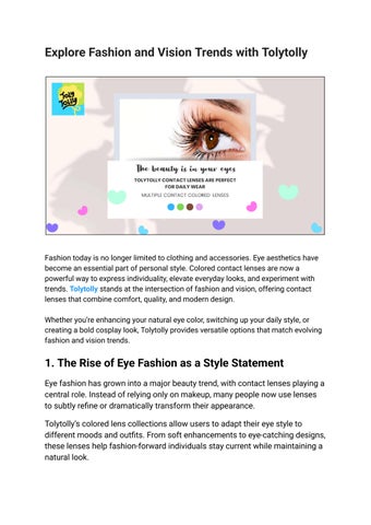 TolyTolly is an online retailer specializing in cosmetic contact lenses designed to help individuals transform their look through subtle enhancements or bold, expressive eye colors. Their lenses aim to offer versatility from natural, everyday wear to vibrant, fashion-forward styles, giving users the freedom to express different aspects of their identity. The brand embraces the idea that eye color can impact confidence and self-expression, describing itself as "an artist of dual beauty, light, and identity.