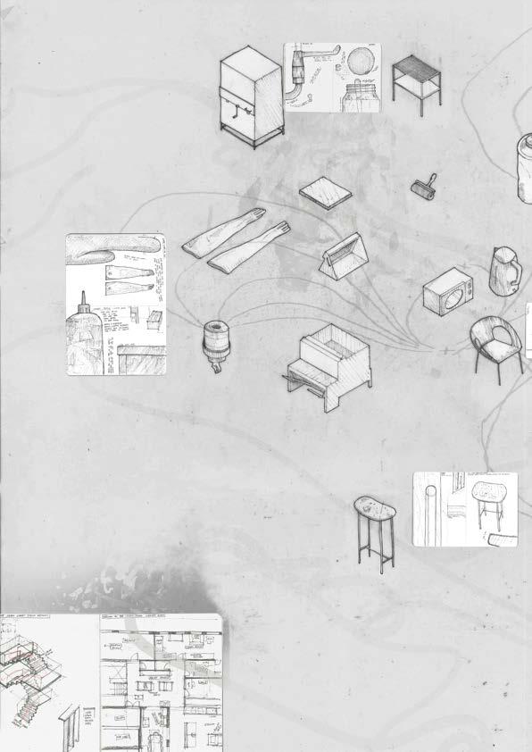 digest the space. This realisation initiated the documentation of held surfaces, describing both their tectonic characteristics in 1:1 cross sections, and more qualitative aspects such as texture and feel in annotations and sketches. Excerpts from the sketchbook are included overleaf, and in its entirety as Appendix A