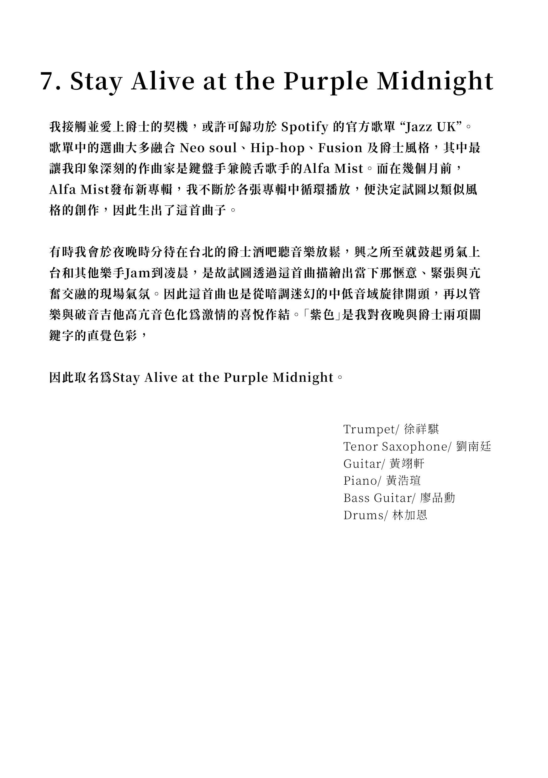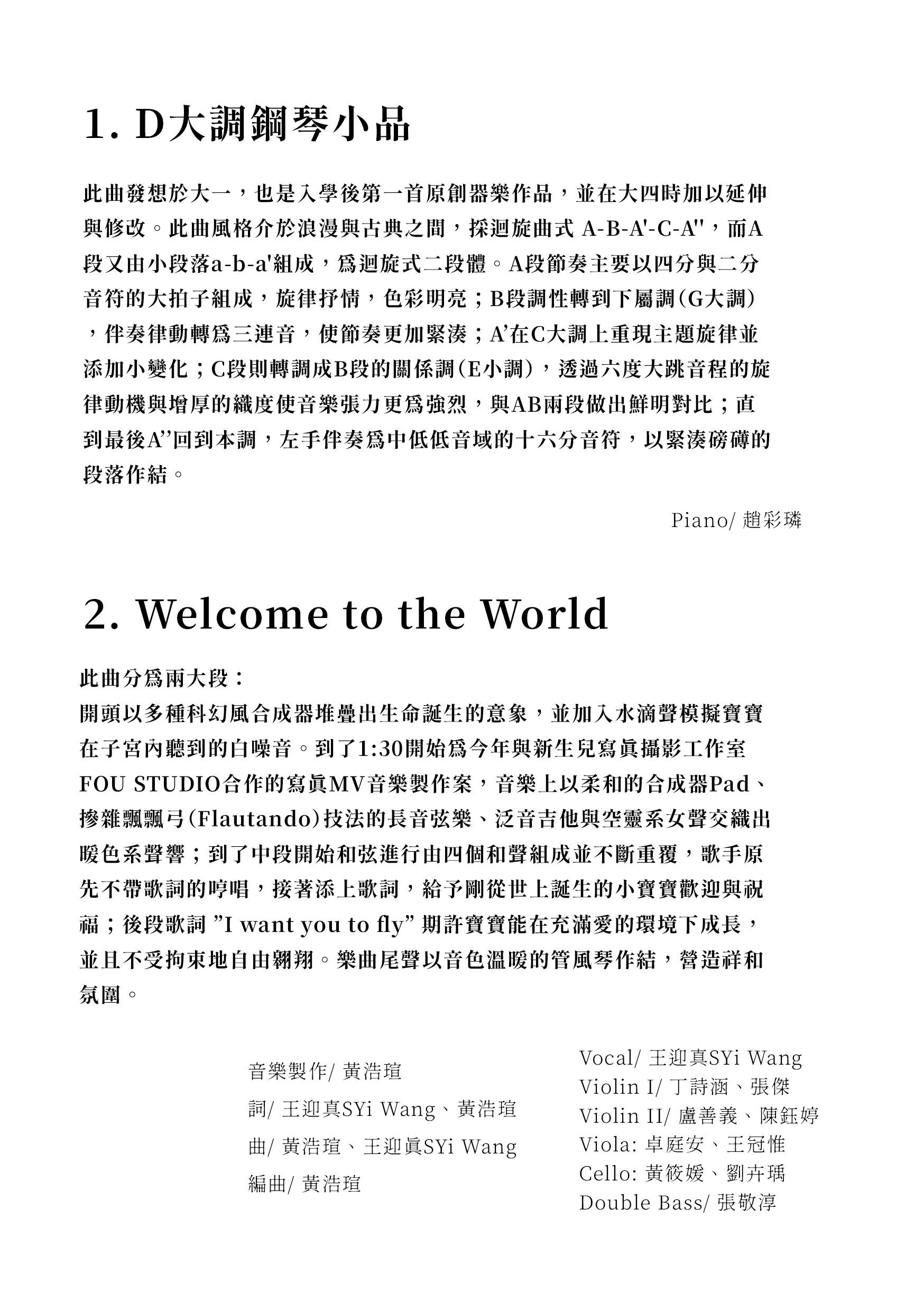 黃浩瑄應用音樂畢業發表會 節目冊