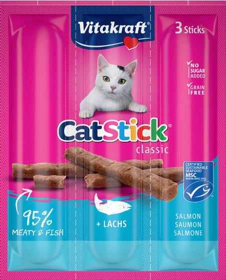 Les Vitakraft® Beef Stick® et Cat Stick® font battre le cœur des chiens et des chats plus vite grâce à leur goût unique, leur odeur irrésistible et leur très forte teneur en viande. Idéal pour gâter, récompenser ou tout simplement offrir une petite gourmandise entre les repas !