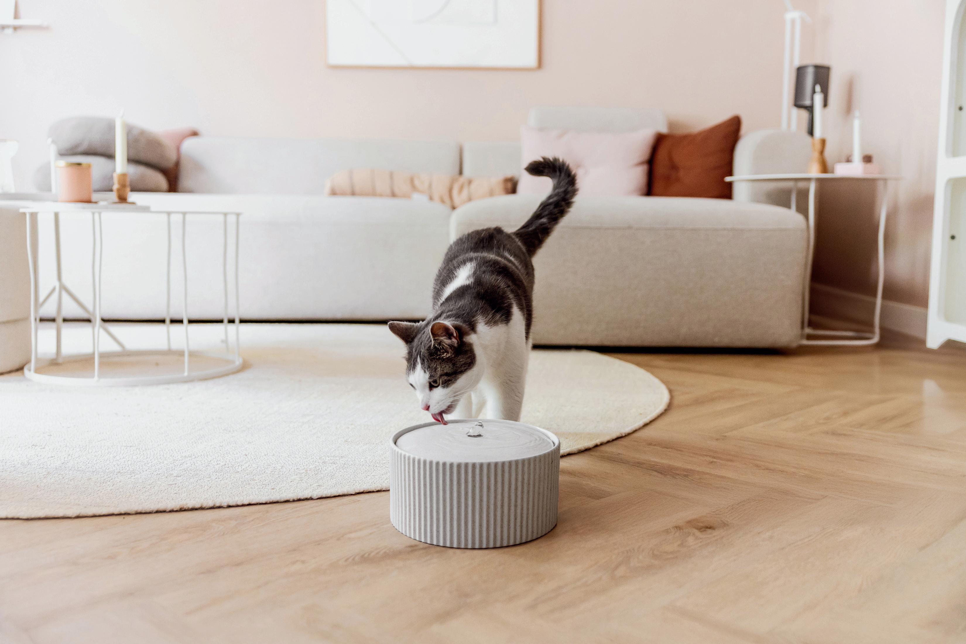 Katten drinken van nature weinig, maar stromend water trekt hun aandacht. Een drinkfonteintje stimuleert hen om meer te drinken.