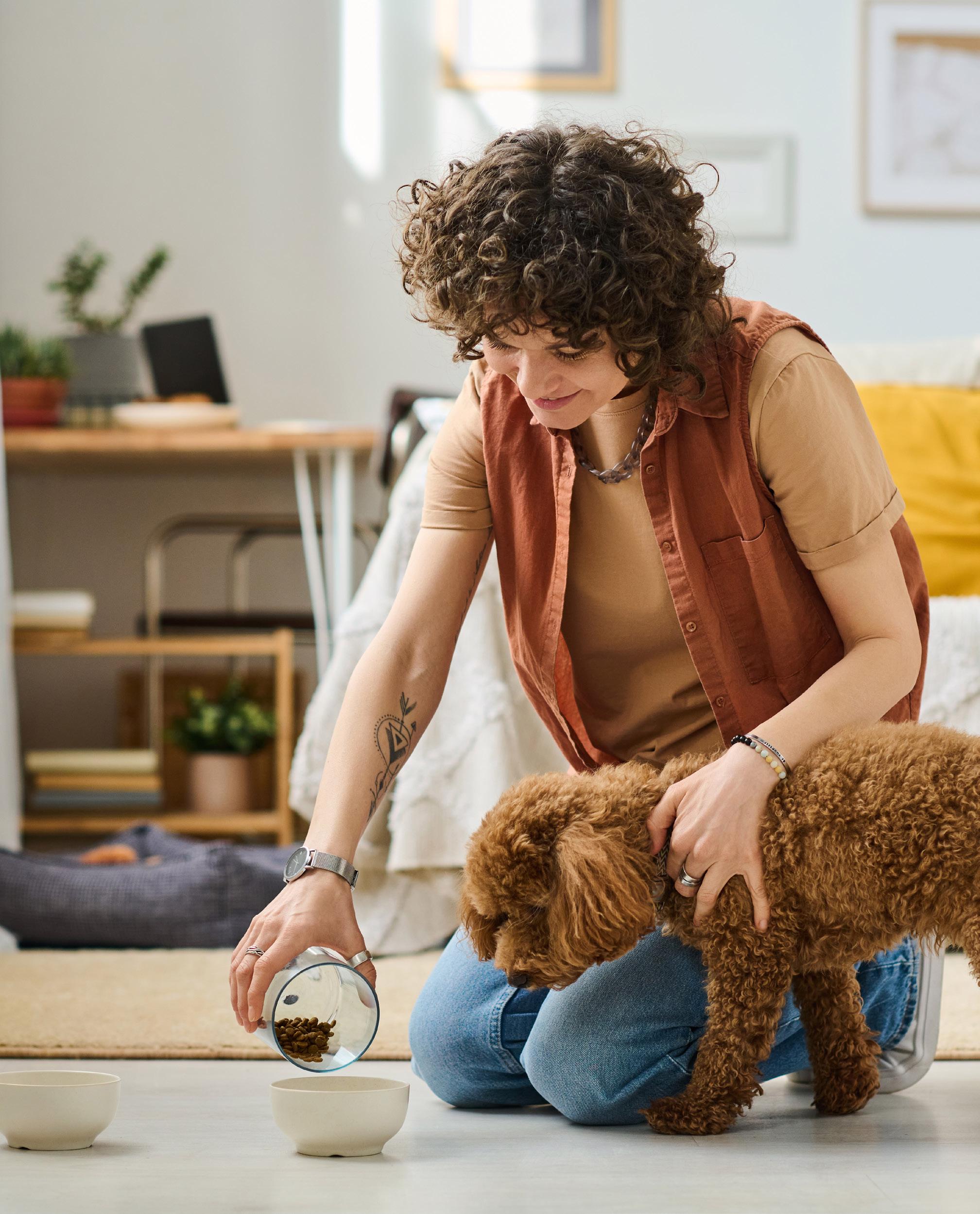 Geef daarnaast gemengde voeding: bij voorkeur een kwart natvoer en drie kwart brokjes per dag.