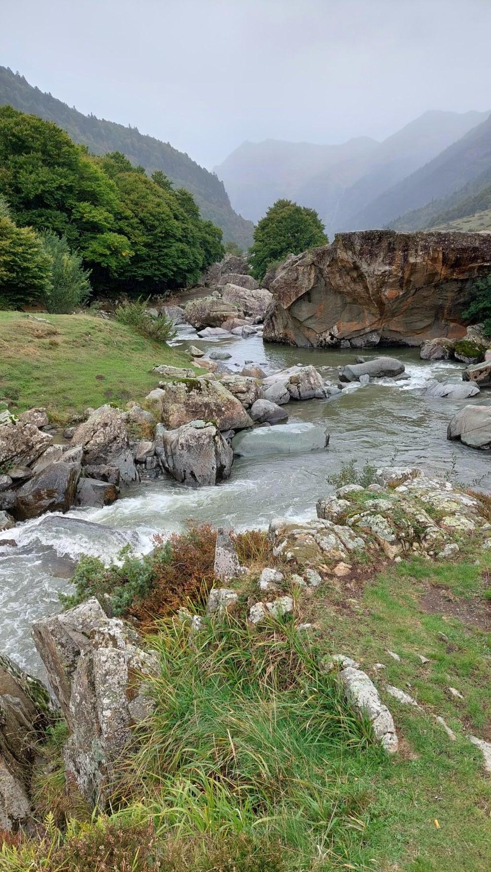 -¡Llévame hasta tu mar! (le dijo la piedra al río), no me dejes en el valle, quiero estar siempre contigo. El río la contemplaba con ternura y con cariño resbalando tierra abajo entre montañas y riscos.