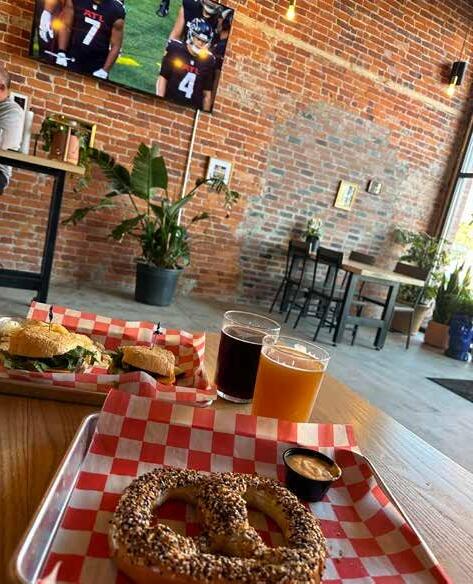 Brews are the star of the show, but a short food menu is available. A large soft pretzel with everything seasoning is served with beer cheese and spicy mustard sauce. Warm pita bread and veggies surround an ample serving of hummus. The Northbrook Salad,