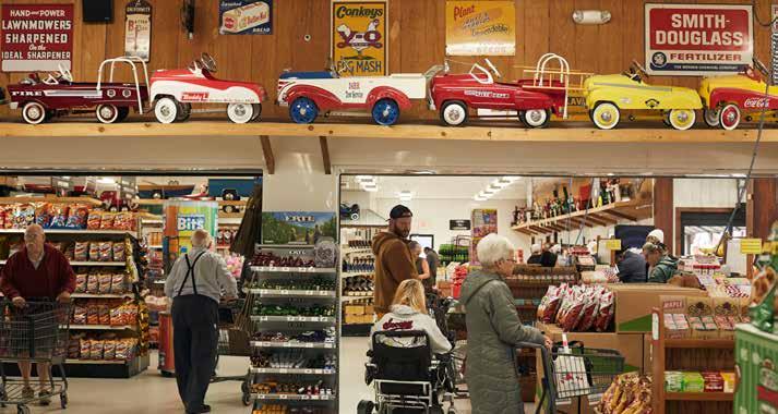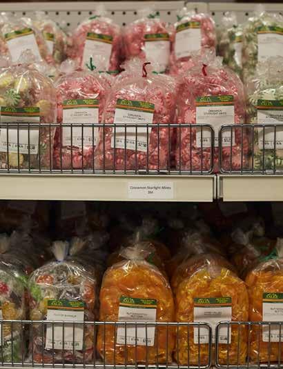 Sandy’s creative streak started at home. She learned wood crafts and wreath-making with her mother, then turned that eye for creative detail toward gifts and displays. The store’s décor is thoughtful yet relaxed — each product helps tell the story. Four streetfacing windows carry the seasonal theme throughout the year.