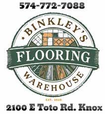 Binkley’s Flooring Warehouse is located at 2100 East Toto Road in Knox. You can call them at 574-772-7088 or email binkleysflooring@yahoo.com for more information.
