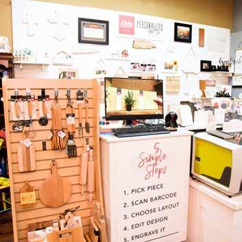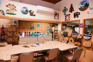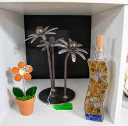 when her father taught her how to create rings out of metal as the foundation for her early artistry, later expanding into working with stones and beads that are popular for baby shower gifts and beyond. Cindy Carter has enjoyed making beautiful items since childhood and now finds inspiration in nature and landscapes for her stained glass, mosaic and ceramics. Lori Bendy’s glass resin pieces are a celebration of color and shape, and her resin glass workshops are some of the most popular. Metal Art by Wesley is an eyecatching collection of unique formations best seen firsthand in the shop.