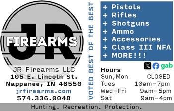 JR Firearms is located at 105 E. Lincoln St. in Nappanee. For more information, email sales@jrfirearms.com or call 574-336-0048.