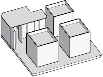 After placing the boxes, walkways are left around them to enhance fluidity of space. Additionally, work areas are situated in the corners, providing privacy through partition walls.