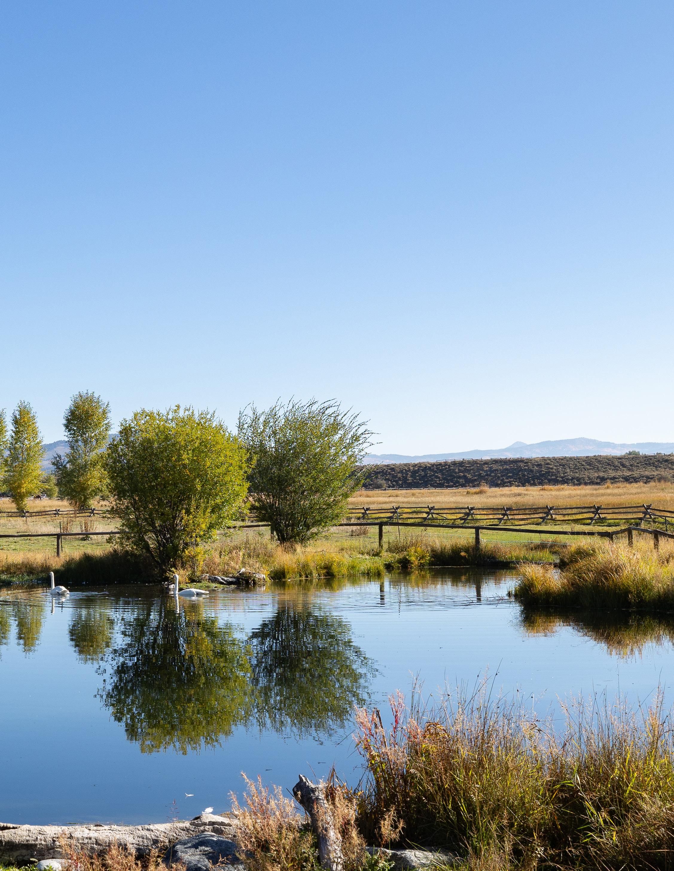 Set in the exquisite Bar B Bar Ranch, this 36-acre property boasts magnificent Grand Teton and Sleeping Indian views, live water and wonderful privacy. With expansive views in every direction, the property inspires serenity and a strong sense of place. Enjoy the colors of every season from this special place where sagebrush and wildflower meadows mingle with stands of mature cottonwood, evergreen and aspen trees. Abundant water graces the property with streams and a large pond, welcoming swans, herons, kingfishers and a diversity of water fowl. Jackson’s wild neighbors including elk, moose deer, and foxes to name a few frequent the property throughout the seasons providing exceptional wildlife viewing opportunities. This property welcomes calm, contemplation and presence.