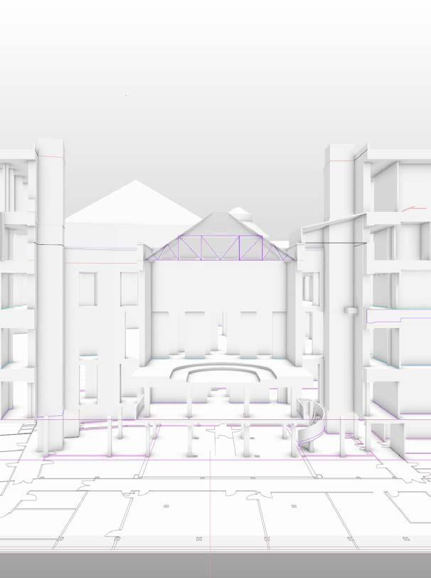 The original Bata Grid system created optimum efficiency and flexibility, but unable to integrate with its surroundings. The project utilises an “erosion of the grid” through landscape reorientation to maximise daylighting & create less prescriptive paths.