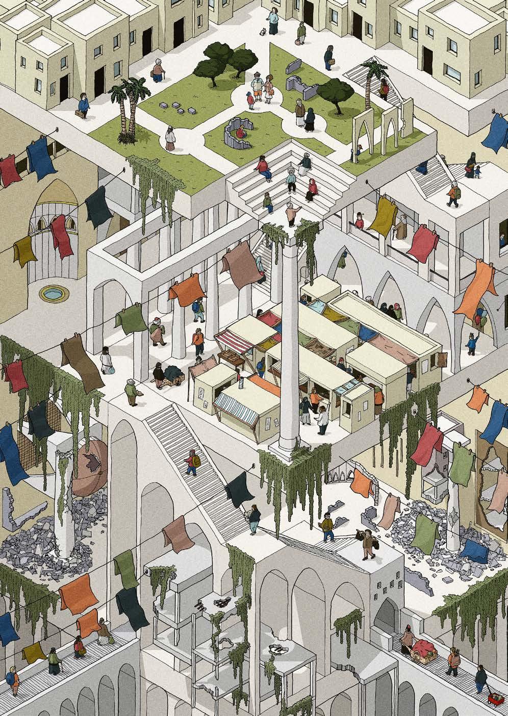 The masterplan demonstrates a twentyyear post-conflict Syria surrounding the Caravanserai.