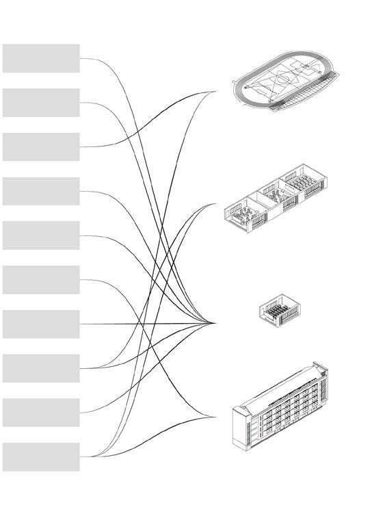 The chessboard model is variable in size and provide different shape of figure/ground relationship. Moreover, different levels of openness/function is compatible and could be applied to the model.