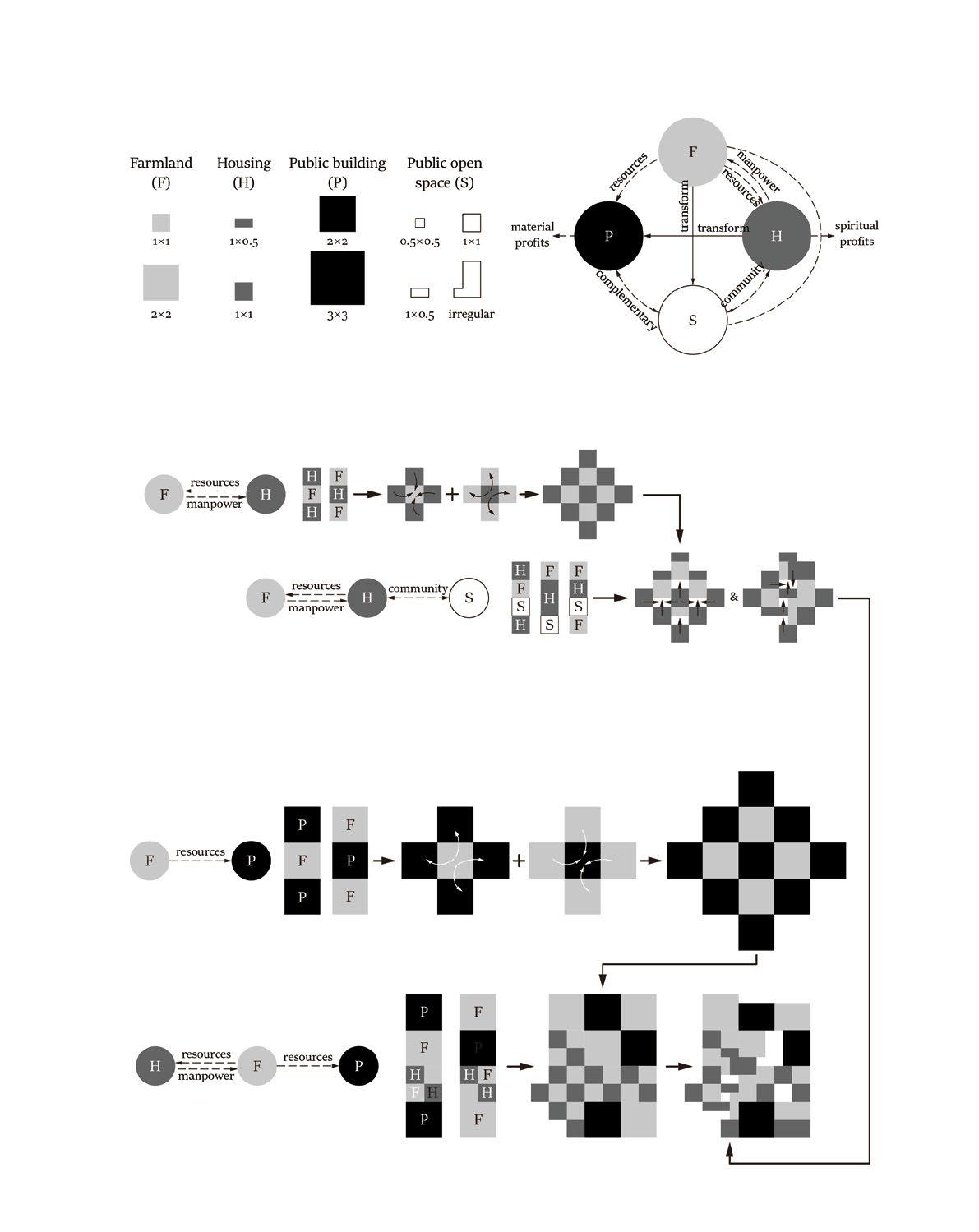 Using the basic combination of farmland and housing as a unit, furtherly develop into a new chessboard model that contains the potential of growing and mode-changing. A sustainable development program could be made according to the chessboard model, in order to bring back the dynamic of the town and using its traditional agriculture base to generate the economy growth.