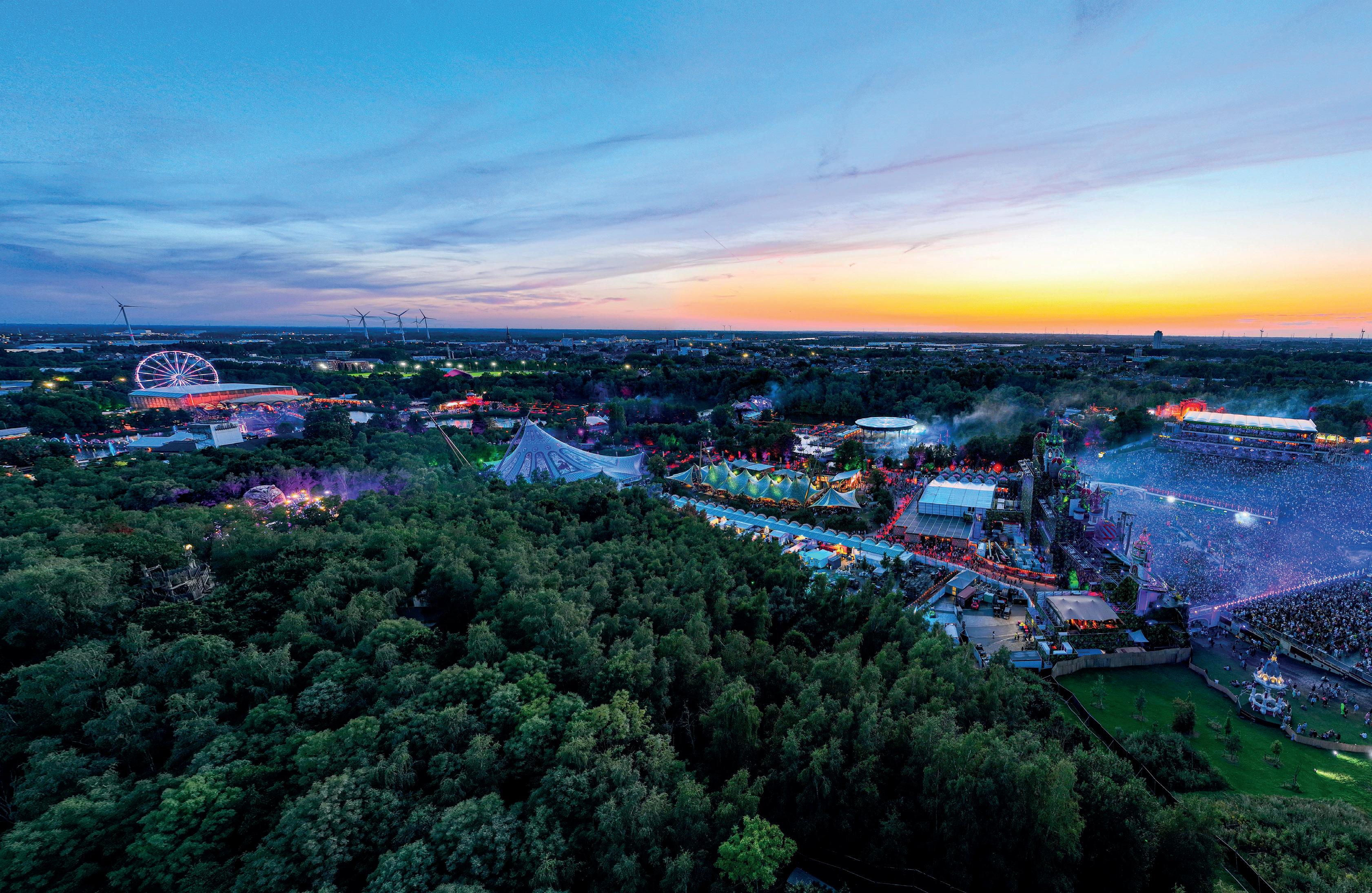 Born from a vision for a harmonious world, conscious and futurefocused decisions and goals are established for every piece of the bigger brand. The sustainability platform Love Tomorrow and the Tomorrowland Foundation are at the forefront of its social and sustainable focus. But as a large-scale festival, it is a must to recognise and acknowledge the local environmental impact as well as the global environmental footprint. Functioning to a temporary city, an event of this size necessitates extensive infrastructure, including provisions for electricity, water, safety measures, and facilitating (inter)national travel.