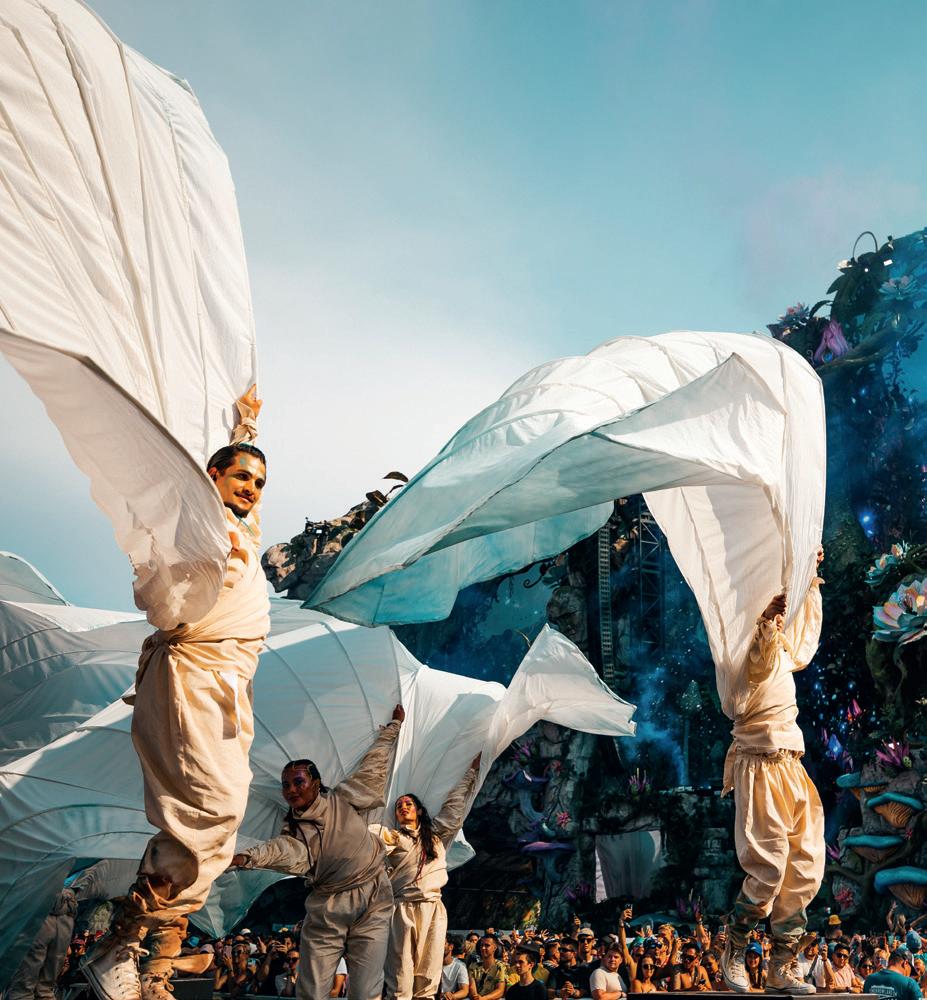 As Tomorrowland kept on growing year on year, so have opportunities to diversify its offerings. From hosting an immersive audiovisual experience in Madrid to producing club nights in Ushuaïa, and from providing a mix of poolside parties and desert adventures in Dubai’s Terra Solis to building a flagship lifestyle store in Ibiza, the list of year-round Tomorrowland activities is endless. Partnerships, including those with renowned Michelin-star chefs, Ridley gravel bikes, the exclusive Baobab scented candles, and the Serax tableware collection, have been another way of fulfilling the People of Tomorrow’s wish to bring bits of the festival’s spirit into everyday life.