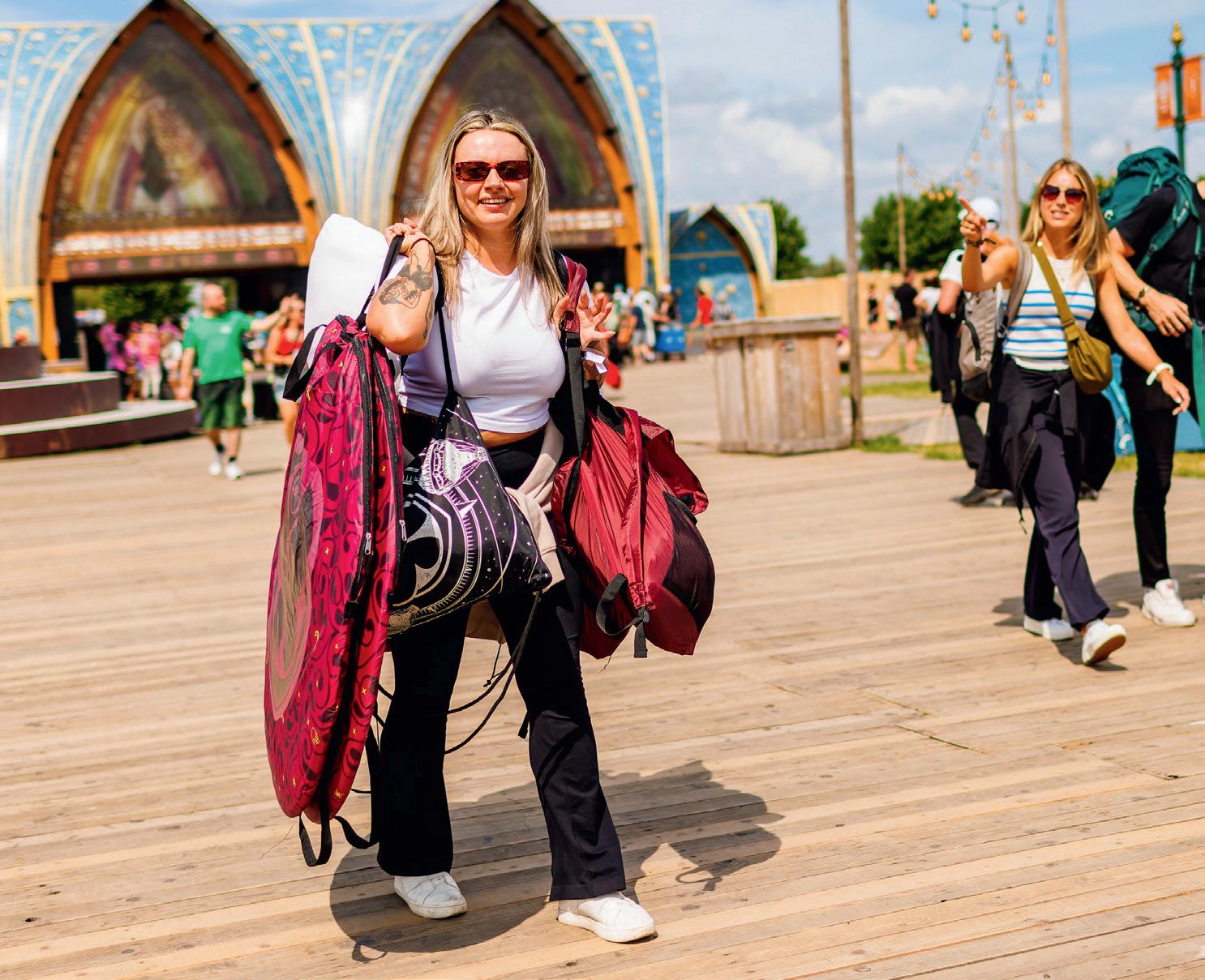 a tote bag that could double as an additional tent, Jay made quite the entrance. “I took the train from London to get here early and claim the best spot. My friends should come in later. I’m hoping they’ll at least help me set all of this up!”