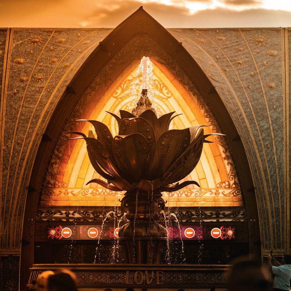 However, today’s Friday, which means the gates will open and we are also looking forward beyond DreamVille to the Holy Grounds, starting with a map on page 20. On page 23, expert Charlotte Polman explains a thing or two about substances and First Aid at Tomorrowland; after absorbing this essential knowledge, move on to the Focus on the Music section on page 27 and beyond to study the line-up and draw up your personal timetable, then read a long-form interview with Agents of Time alongside loads of selected artist bios. Of course, along the way there, don’t forget to absorb the latest news on pages 7 and 13 and a report of the Love Tomorrow Summit .
