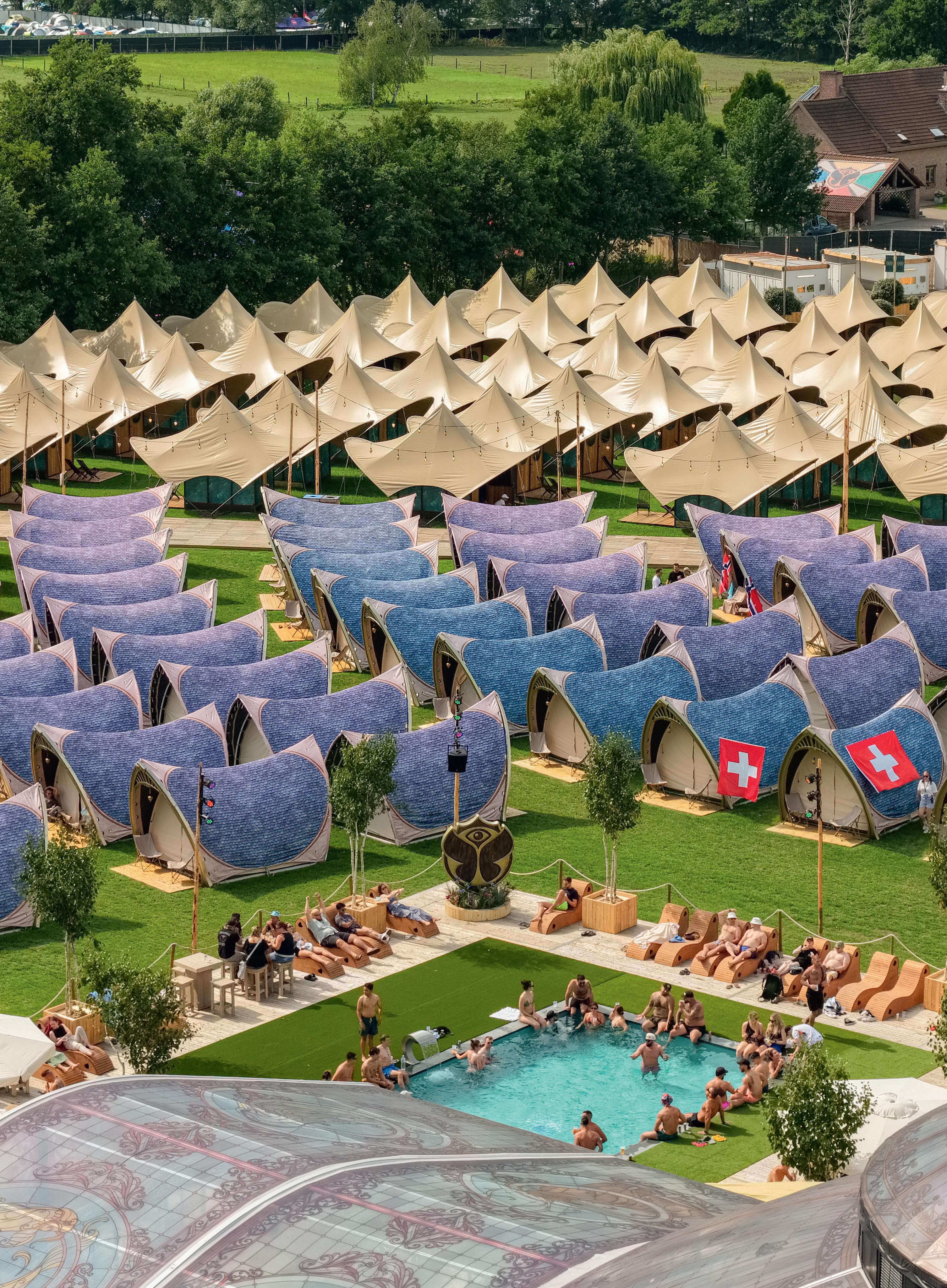 We spotted Lizzie from Perth by her bright orange-yellow hair. “We’re here with 62 Aussies this year,” she says proudly. “And yes, we have a glam tent. Actually… it’s just a spare one to get ready in. Priorities, right?”