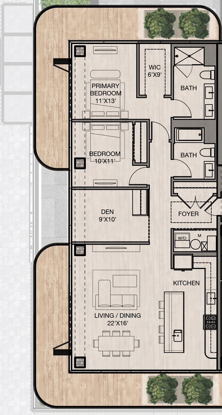 Drawing influence from both luxury multifamily and high-end hospitality design, VIOR merges the warmth and strength of timber with a refined, modern material palette—creating a living environment that feels both grounded and elevated.