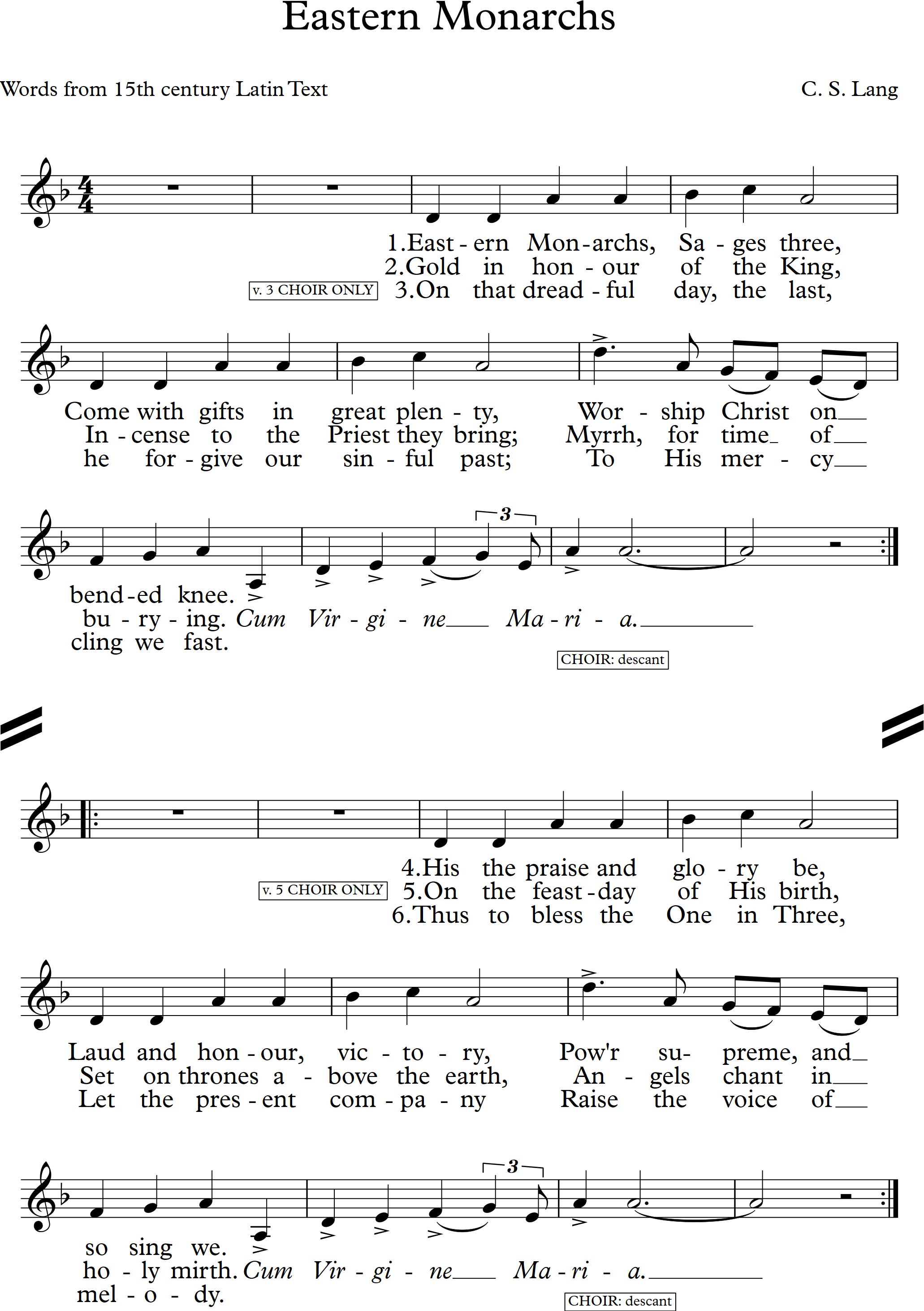 Hymn Eastern Monarchs, Sages Three (see page 34) Place London